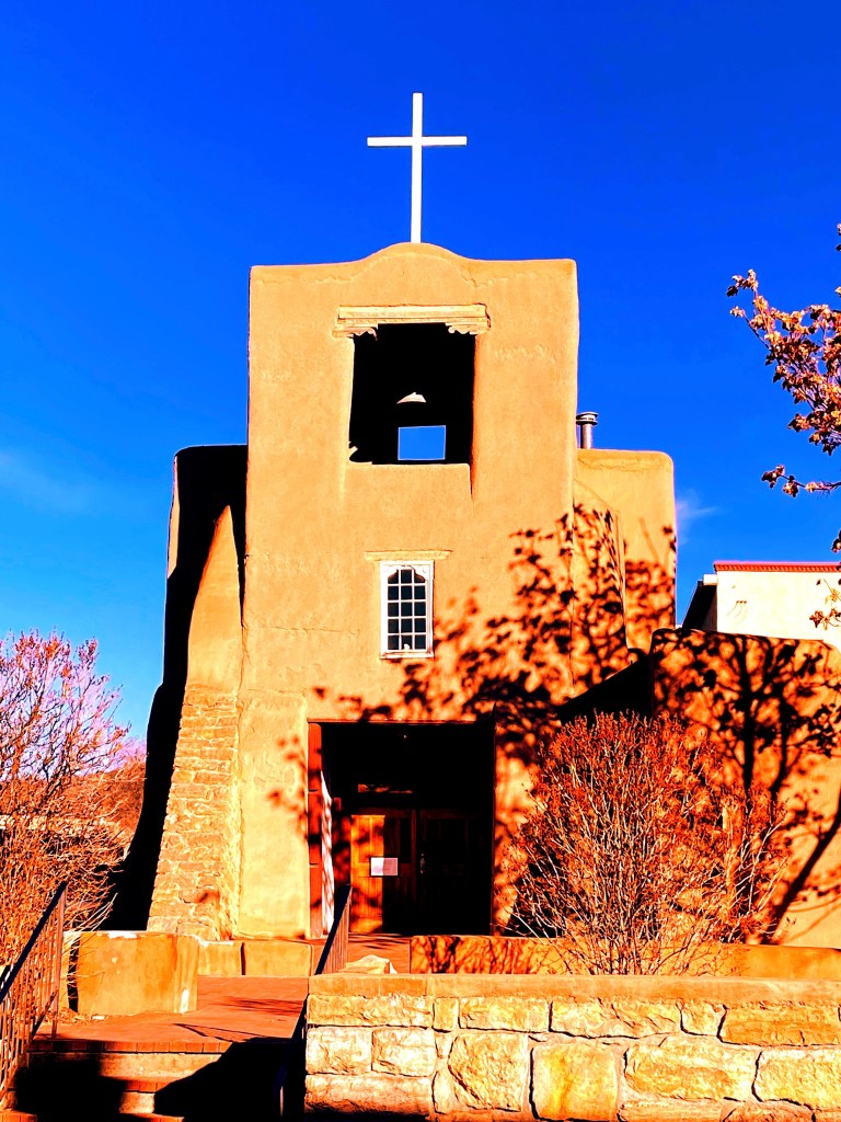 Time has worn but couldn’t break and still you stand, baked clay with a steeple in the desert mountain lands. Brown and cream against a clear blue set among the rugged desert hues. San Miguel must have seen so many souls, century after century after century. But adobe holds well. Michael must have stood watch, and fought the devilish elements away, keeping hell at bay. Hell may have tried, but San Miguel prevailed.