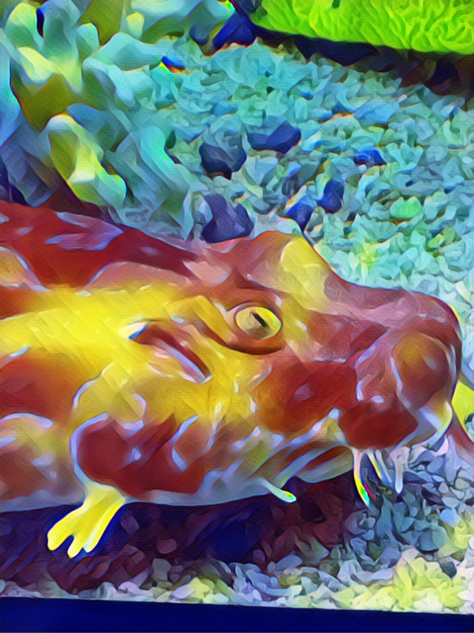 I looked over at the receptionist now appearing as a catfish with a head of red hair. “Spill it into that big mouth!”